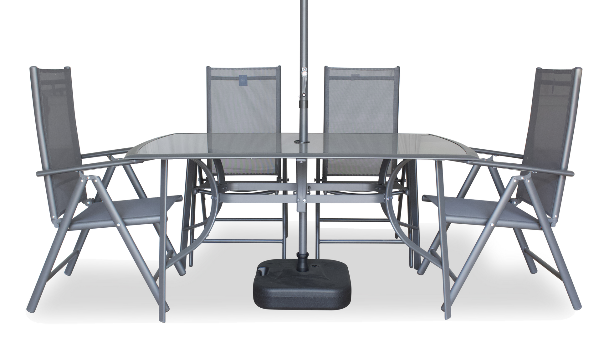 - Sillas: estructura de aluminio con pintura anticorrosiva, asiento y respaldo en malla, cuenta con 6 posiciones.